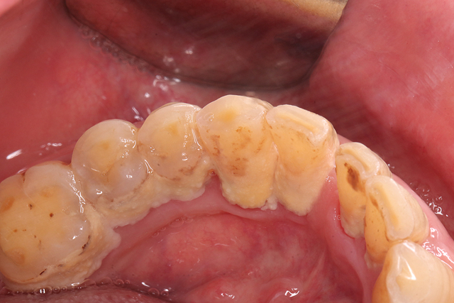 人体口腔并不是一个无菌状态,无数个细菌再加上食物残渣形成的牙菌斑如果没有及时清理长期沉积在牙齿表面特别是在牙颈与牙龈交界处,长期刺激牙龈会引发牙龈炎而导致口臭、牙龈红肿、出血等情况,且在牙龈炎症状之后,如果没有及时治疗可能会导致牙周炎的发生,使牙龈、牙周膜、牙槽骨和牙骨质遭到破坏,如牙周袋的形成、附着丧失和牙槽骨吸收,随着病程发展严重会出现牙齿松动、移位、牙龈萎缩、肿胀疼痛、导致牙齿缺失。